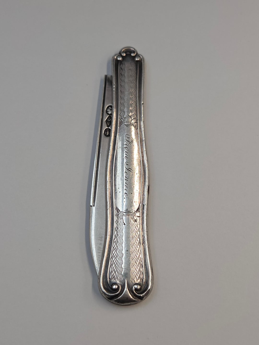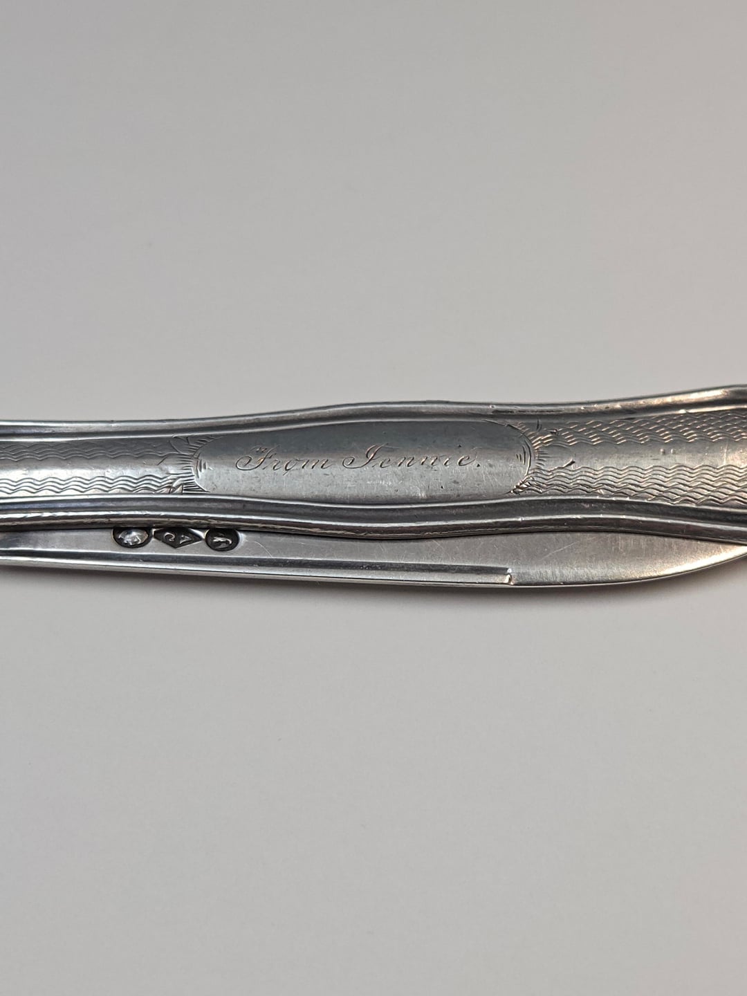 Picked up an awesome antique pocket knife today at a vintage/antique market. Solid coin silver (including the blade), manufactured by Albert Coles & Co in the early-mid 1850s. Albert Coles was active in New York City from 1835 to 1877. Engraved “From Jennie”