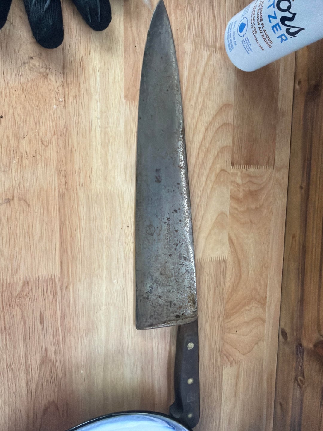 Sorry if not allowed but this was my grandads 14” and he passed it down to my papa who also recently passed and now it’s mine, I’m always smoking huge pieces of meat & would love to get it back in action, I’m curious if anyone has any idea of how old this knife is?