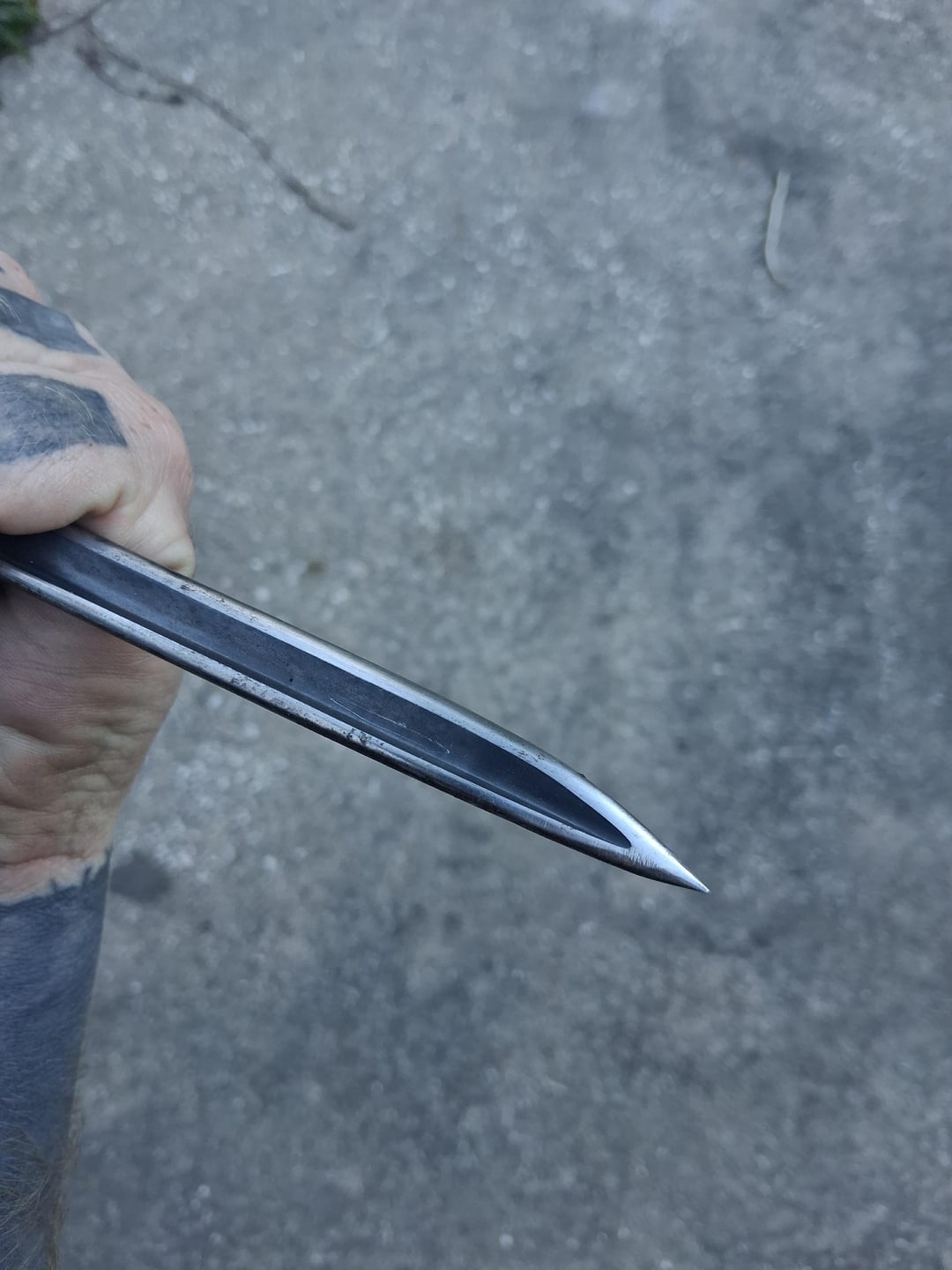 was recently gifted this knife and figured yall would be interested in seeing it. This knife is made from a human hip replacement recovered after cremation then sharpened to a fine point. 100% the oddest "non standard" knife in my collection and a piece im stoked to own.