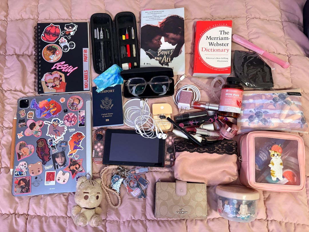 I loveee lurking in this sub and i thought i'd share since i'm putting my stuff together rn. what does my bag say about me to u!