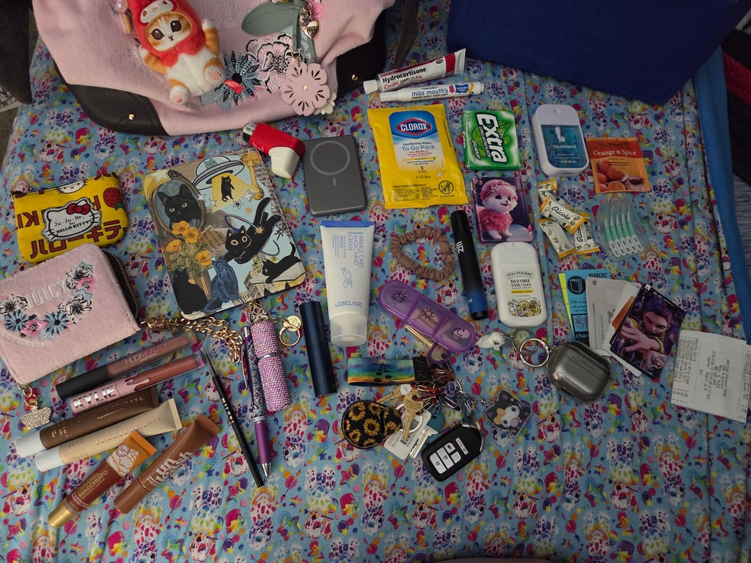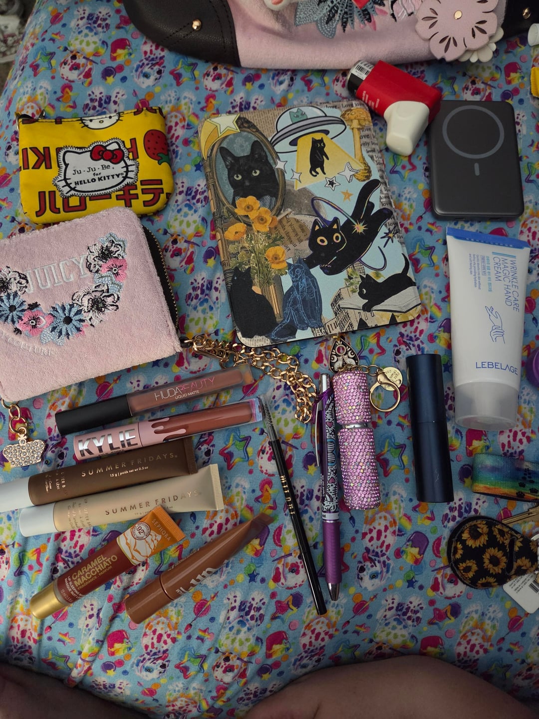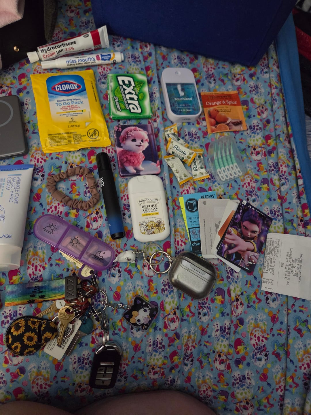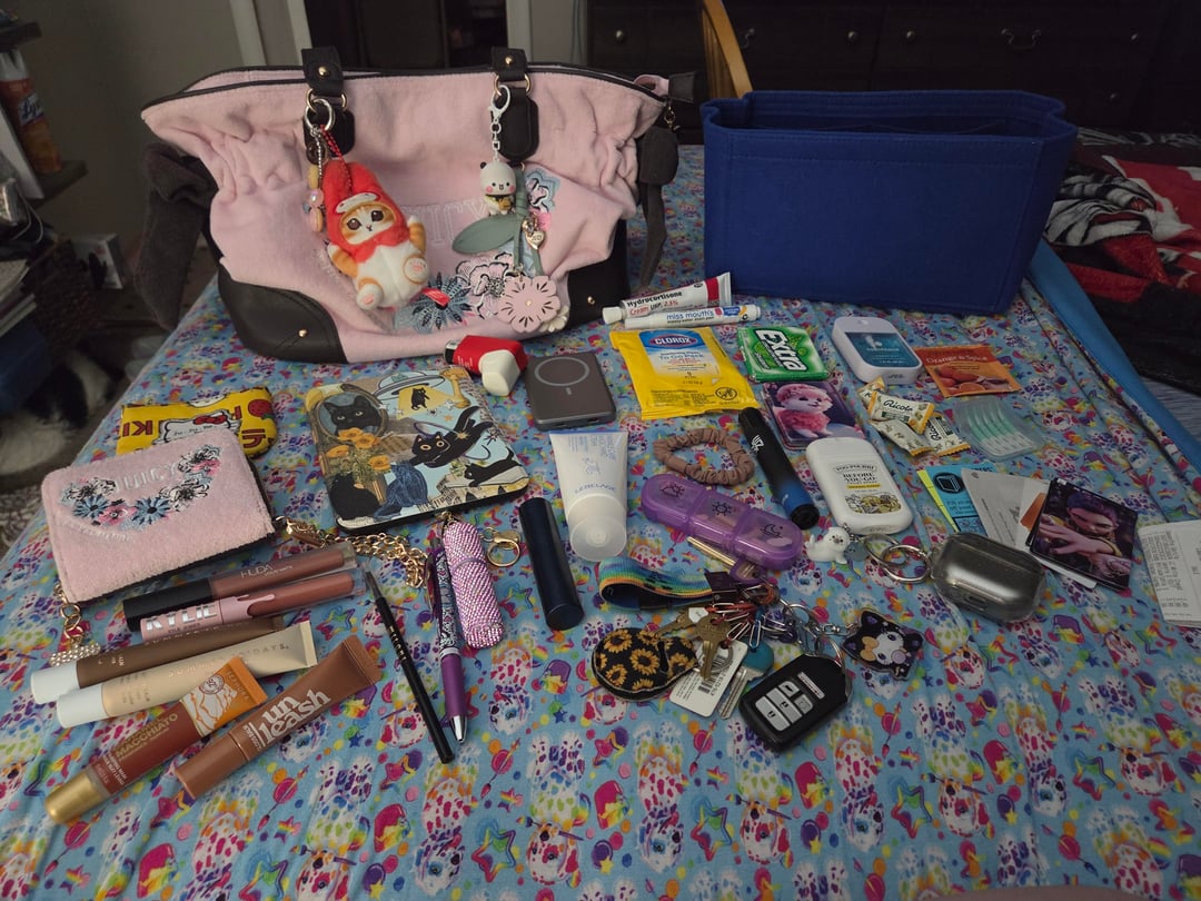 My Mom got me a new purse and matching wallet with her tax refund (she hardly ever buys me anything so I love it). Blue thing is my felt organizer.