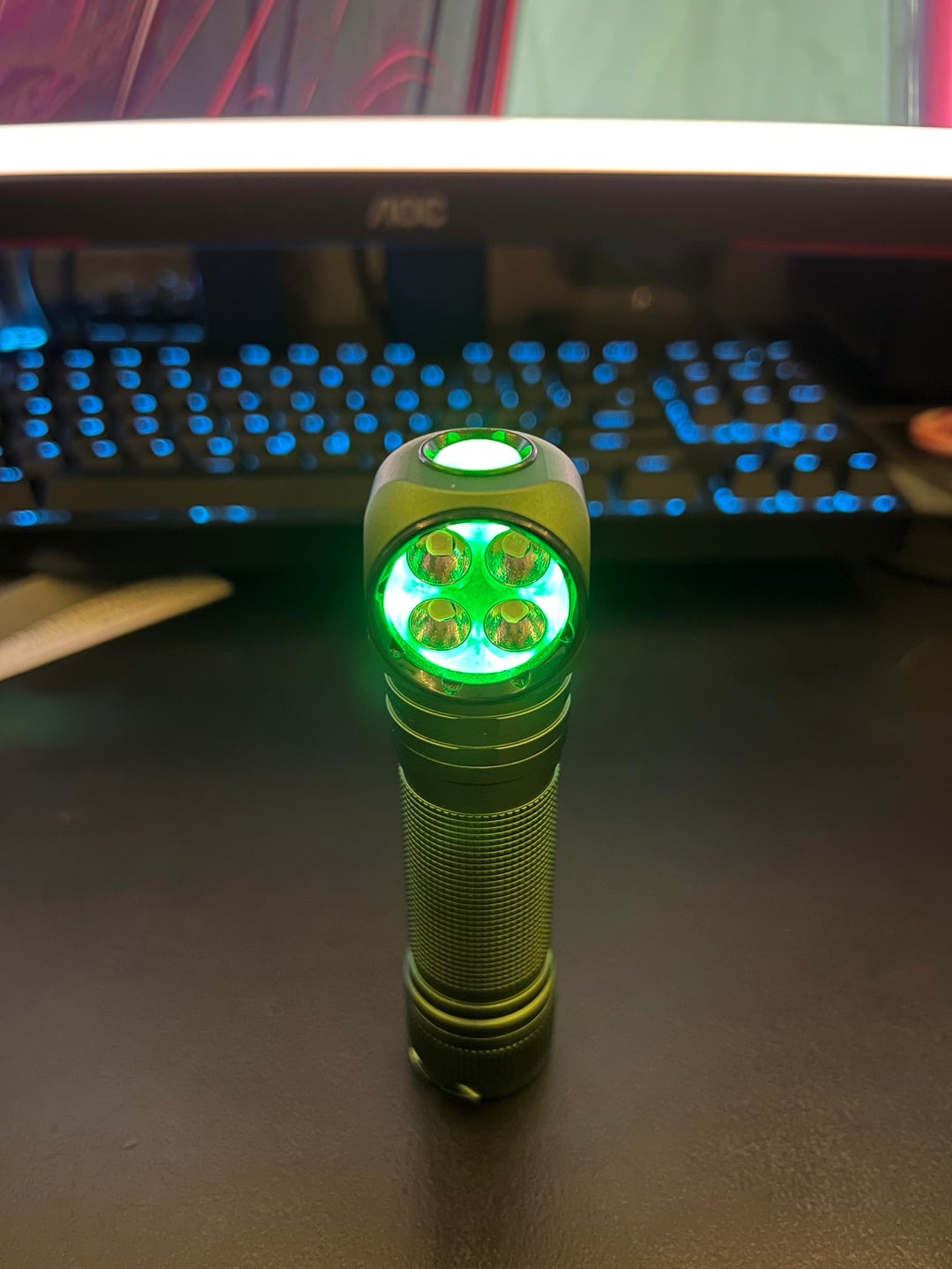 10/10 form factor, tint is really really nice, good throw for what it is and will light up a room with ease if you need it to. The Vapcell K10 1000mah battery has enough juice that with a full day of moderate use on lower brightness modes and on high when I needed it, I was on 3.5V (Orange) at the end of the day. Most days I end up around 3.9V – 3.7V. 10/10 would recommend
