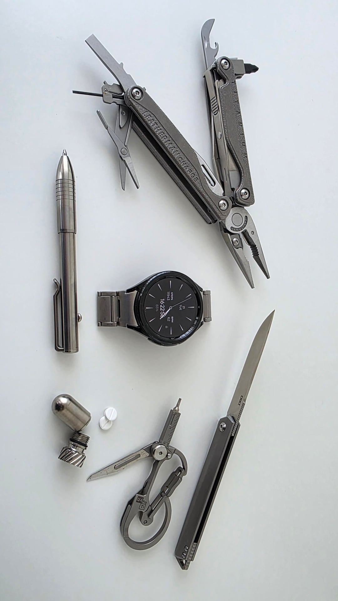 In EDC Titanium Tuesday April 21, 2026 Capsule: Flytanium Fly Nuke Watch: Galaxy Watch6 (on a titanium band) Pen: Big Idea Design Bolt Action Knife: CRKT Stylus Multitool: Leatherman Charge Plus TTi Carabiner: RovyVon U4 Pro by stefankruithof EDC Prev Post New Knife Day April 21, 2026 Next Post Tanto Tuesday April 21, 2026 Related Posts Wednesday Night Off April 23, 2026 Today’s EDC April 23, 2026 Tactical iPad kit 😂 April 23, 2026 1 Comment AutoModerator 2 days ago Thank you for posting to r/EDC! Include a detailed item list (make/model) within **1 hour** of submission. Lists can go in the title, a comment, or the image. Posts without lists will be removed. If you have already provided a list, not further action is needed, thanks! [Rules](https://www.reddit.com/r/EDC/wiki/rules) | [FAQ](https://www.reddit.com/r/EDC/wiki/faq) *I am a bot, and this action was performed automatically. Please [contact the moderators of this subreddit](/message/compose/?to=/r/EDC) if you have any questions or concerns.* Write A CommentYou must be logged in to post a comment.