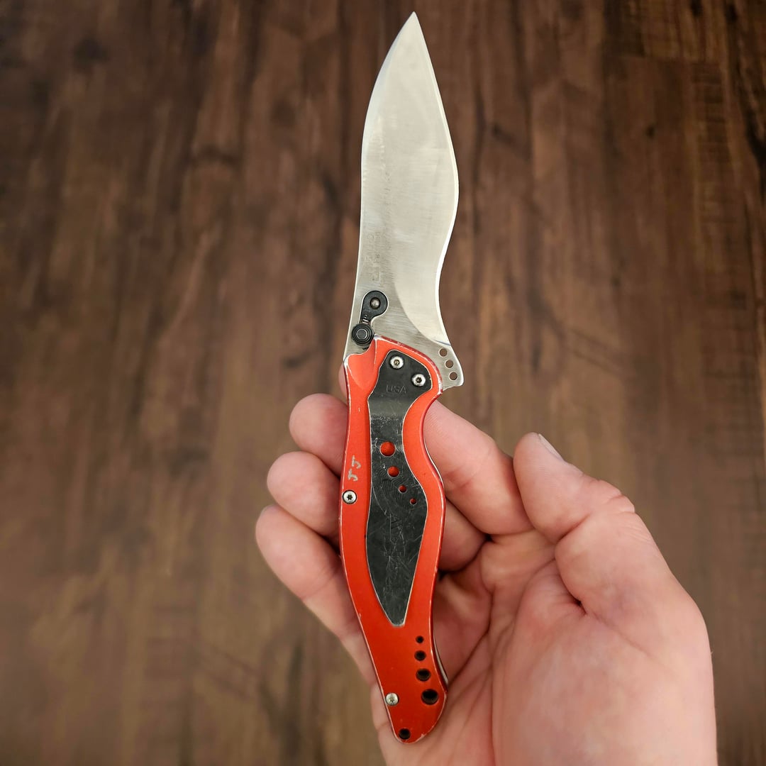 It's not cool by todays boujee standards but this was my daily since 2011. Its the Ken Onion USA variant but not a Spec Bump bc of the Snapon branded aluminum handle. It has spent the last 2 years out of commission since a couple screws fell out. Kershaw offers no replacement parts on this early model so I decided to canabalize another old Kershaw and got it back in action! The locking mech is too weird for most ppl but I absolutely love it. Super quick and has never had any of the issues I've read about. Cheers 🍻