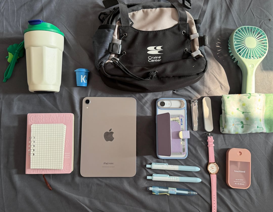 This is the bag I usually take to school. We normally keep our books in the classroom or lockers, so these are just the essentials I carry with me.