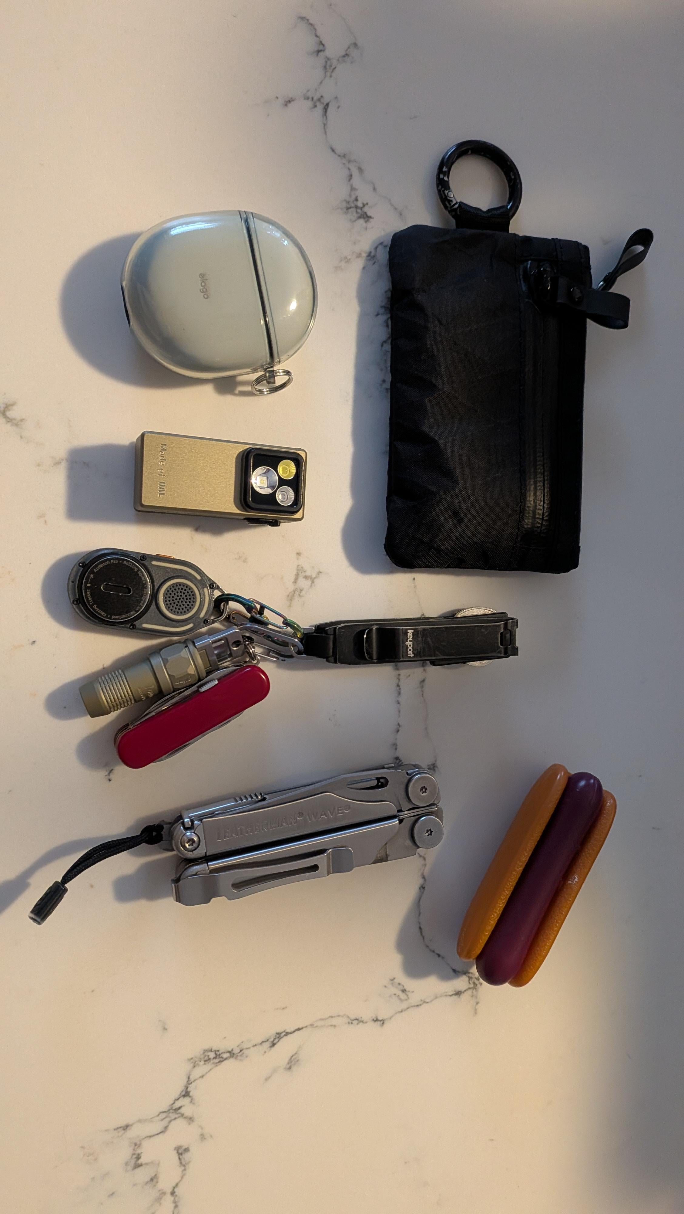 Keys: key port pivot 2.0 with the pocket clip, also attached is a key tracker from rolling Square, a Victorinox Mini champ, and Olight iMini Ultra (replacing my long standing OG iMini)