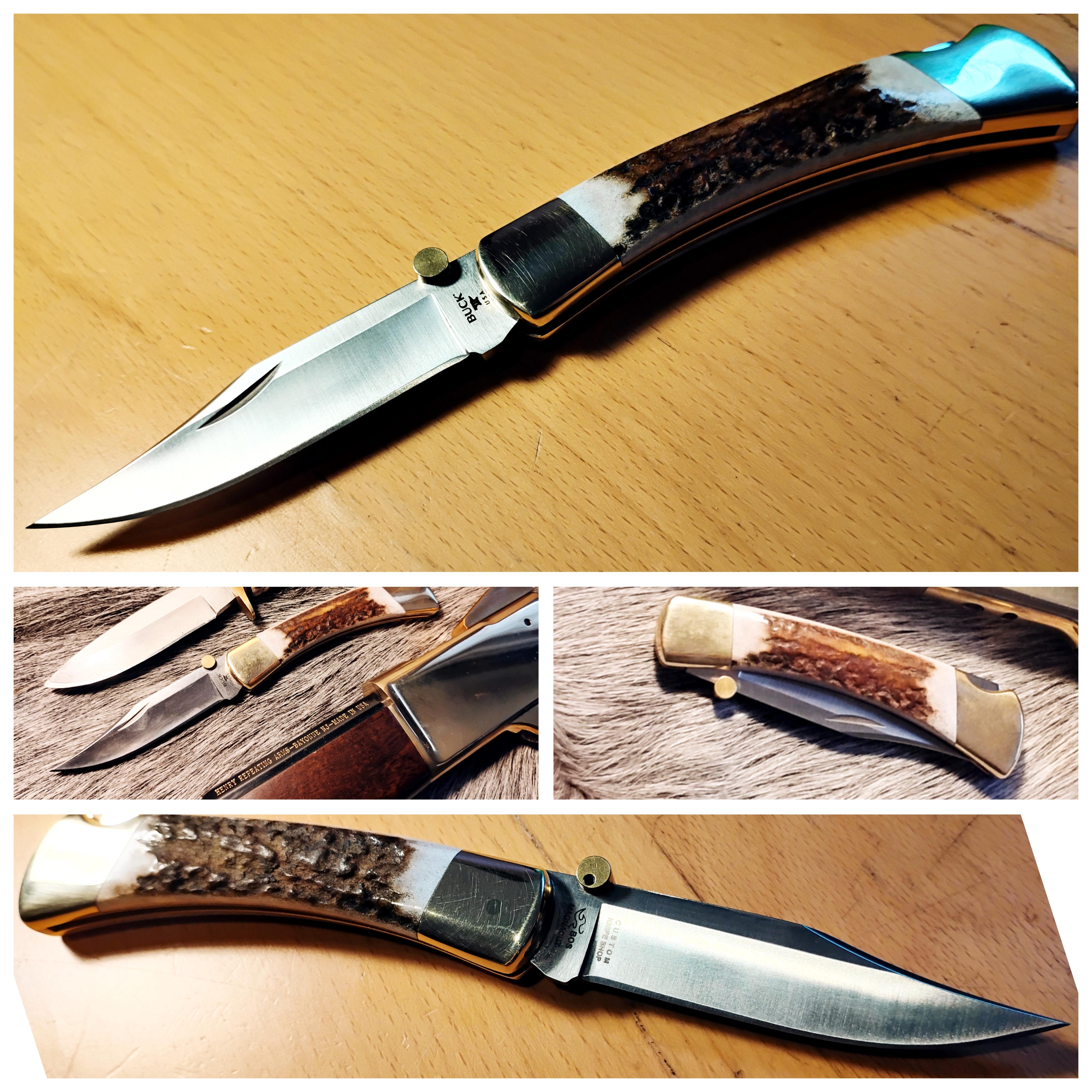 First KND in many years, magnacut 110 with elk antler scales and polished brass. I've wanted one a long while now but cost had always kept it out of reach. $550CAD tax and shipping included. Finally had a good year with no breakdowns or major house repairs and pulled the trigger. Waited three months from order, but it was worth it. My new EDC.