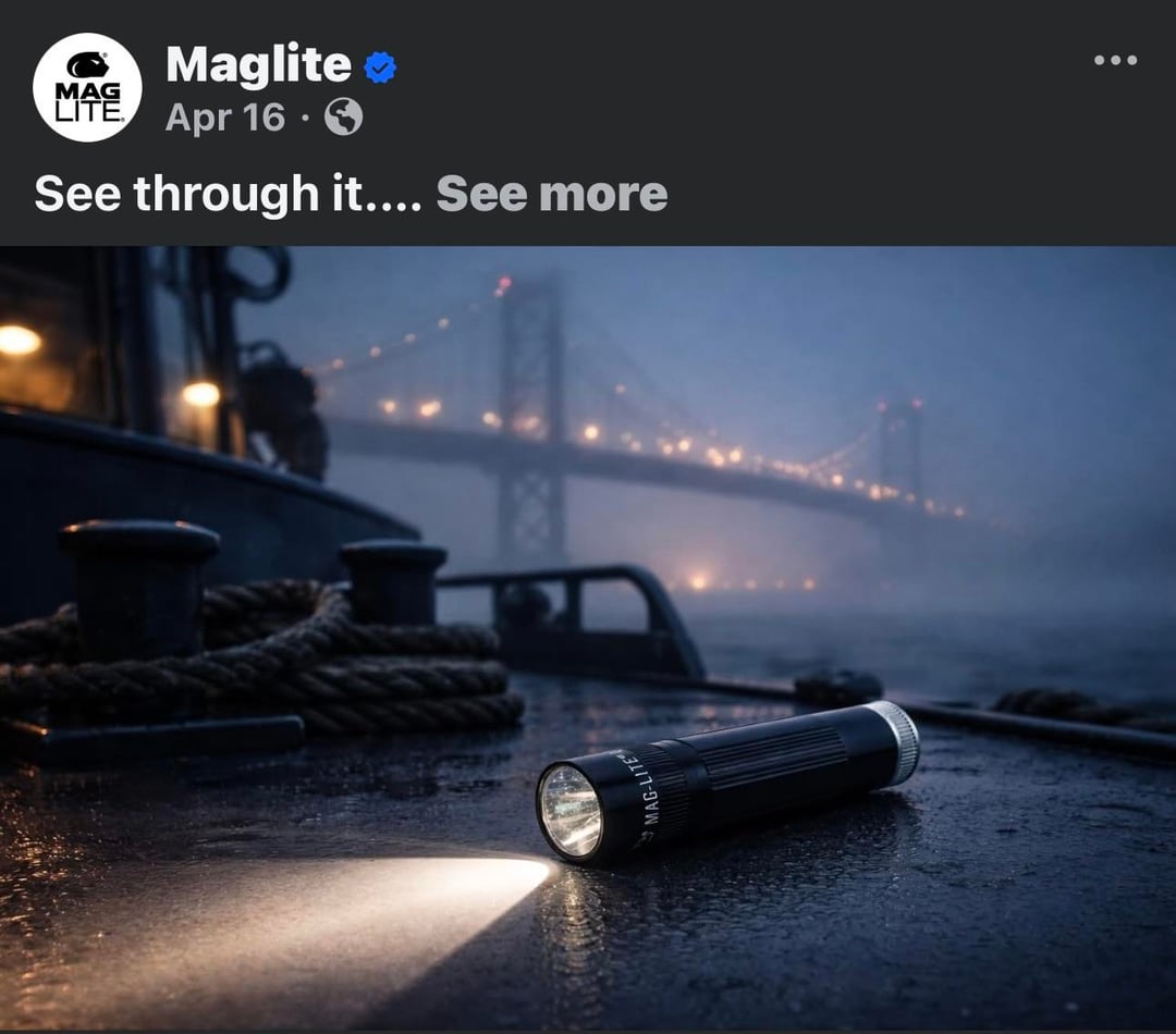 I saw one of these ads on FB a few back and thought it was strange they showcased flashlights in foreground with a fully lit baseball field in the background and I keep seeing them and they all weird show a light…not being used. Pretty sure AI is being used quite a bit to make these images but just struck me as bizarre.