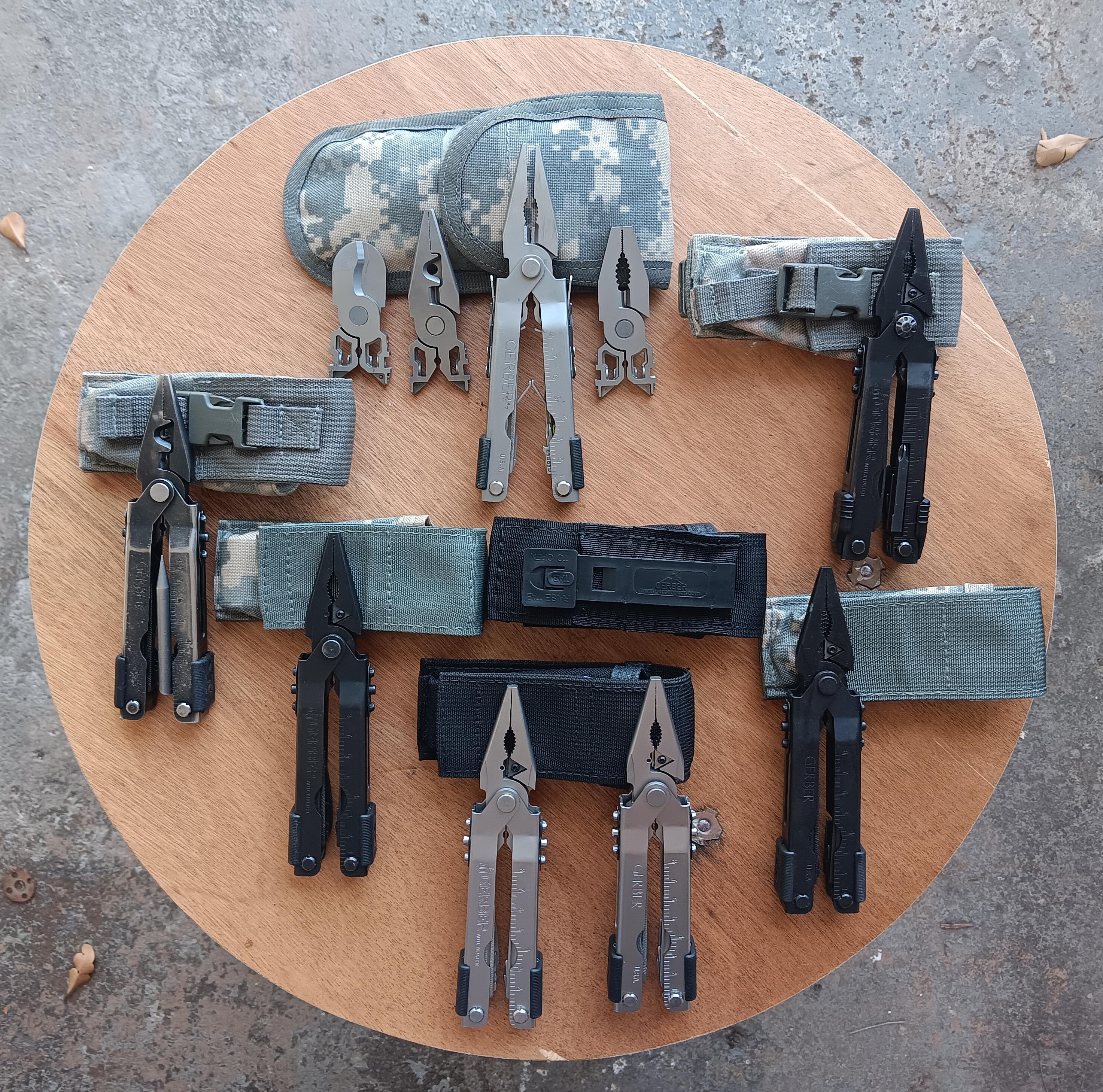 I have both of my Gerber multitools that were issued to me in the mid 90’s in the US Navy. Neither of them look like those. They stay in my truck and car respectively. Both of mine are blunt nose pliers not needle nose. Only one of them has locking tools. Cool collection
