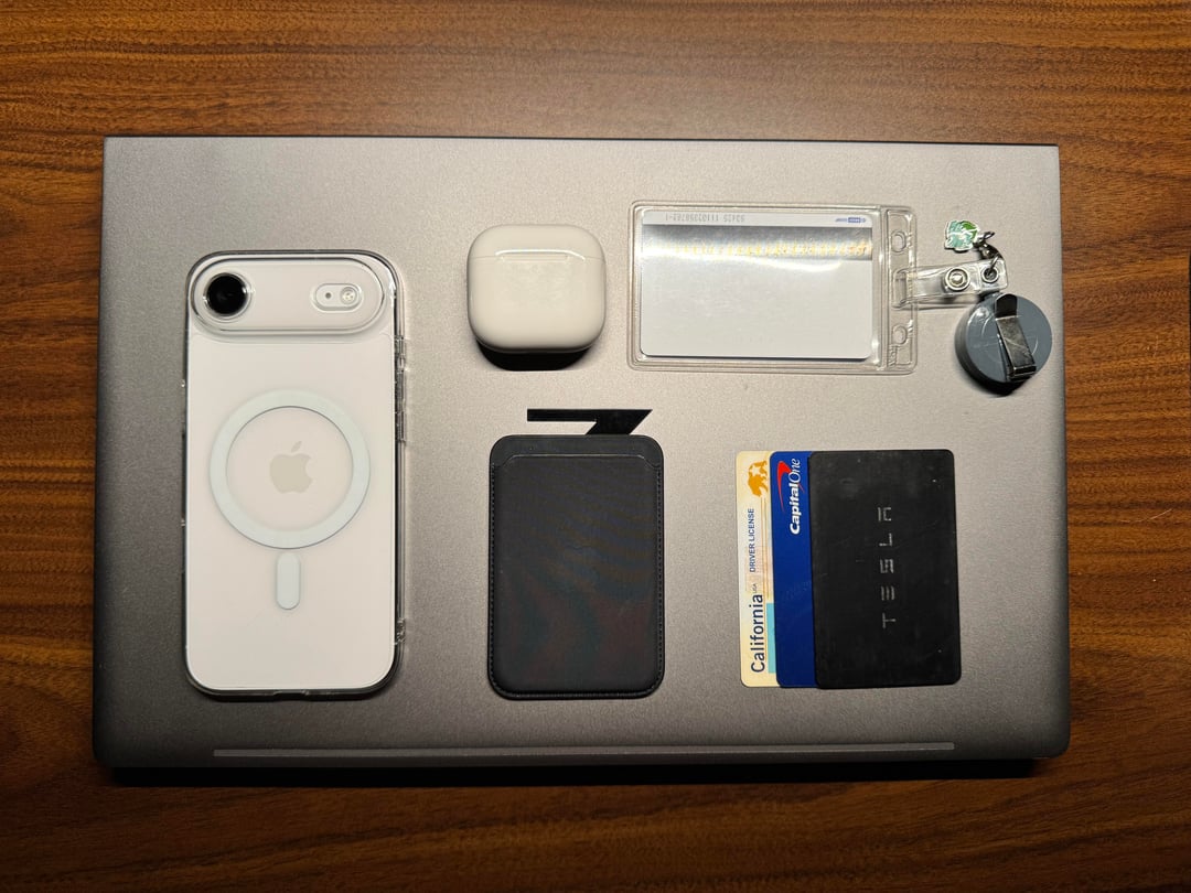 This has been my EDC for 7 years and has been working great for me; only difference is the models got updated over time. For example, I used to EDC an iPhone 12 Pro, leather magsafe wallet, a chase credit card, first gen airpod, and company issued hp backpack.