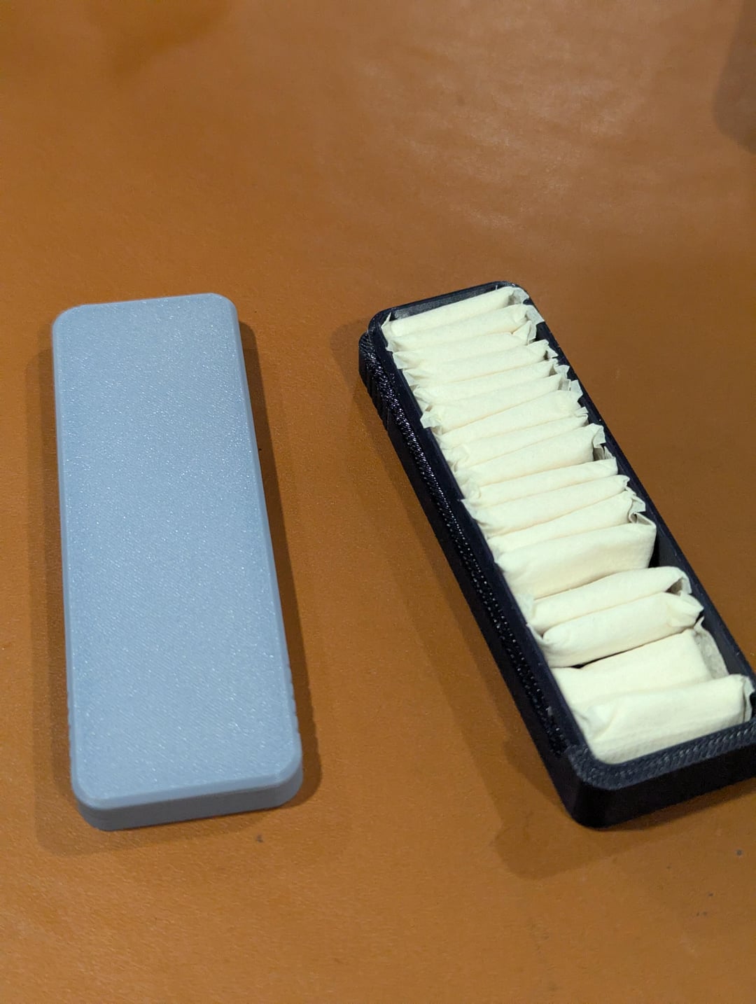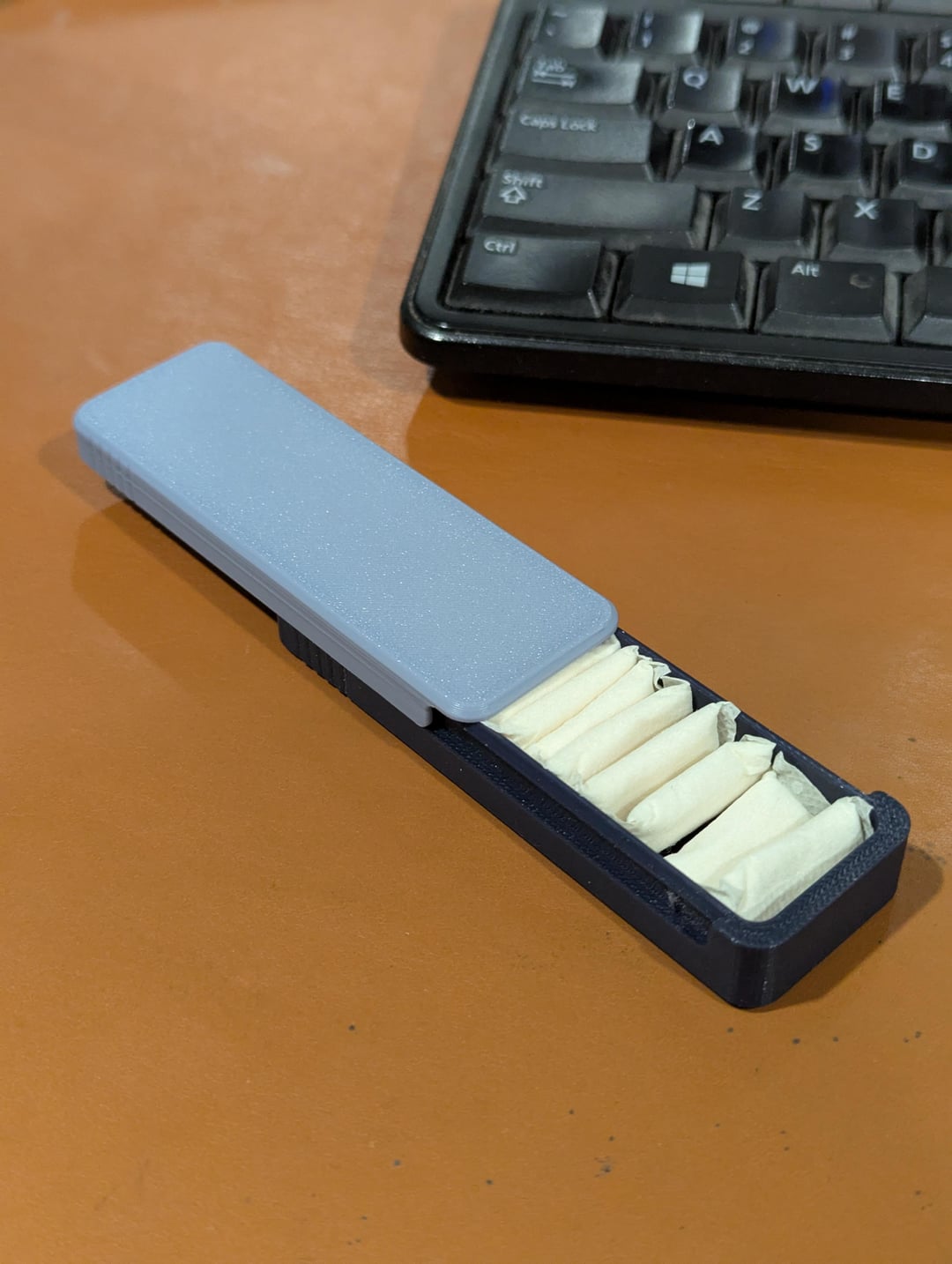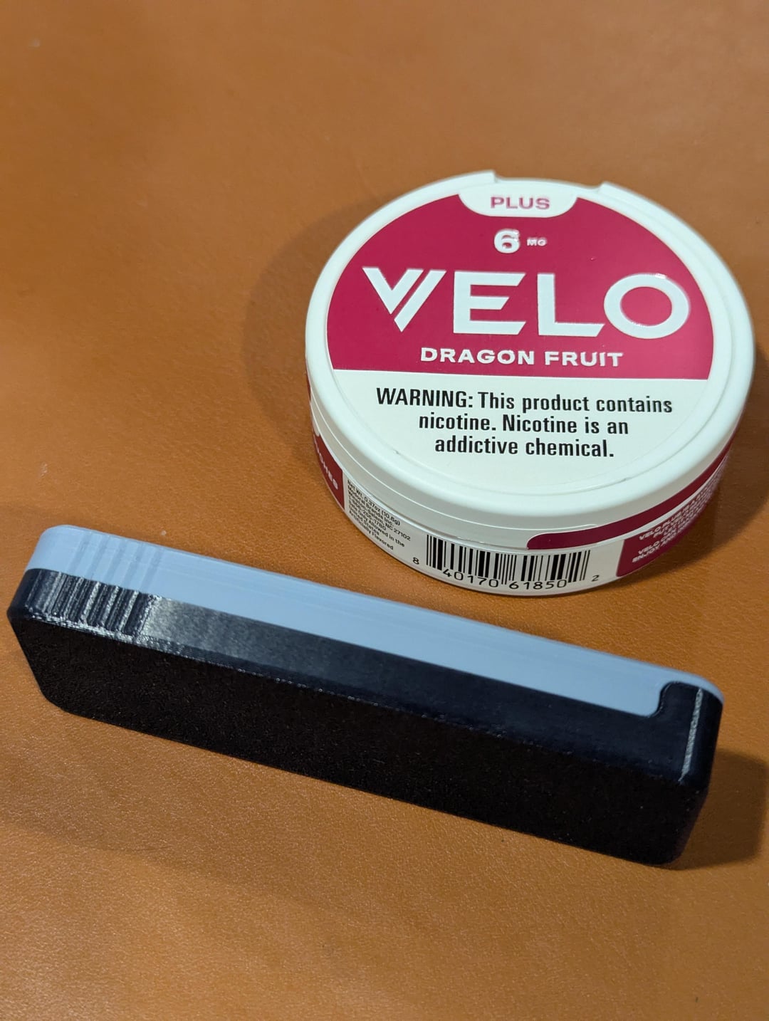 This thing holds a whole tin +2 in the smallest package possible. It fits right next to a phone and doesn't have nicotine pouch branding for discrete carry in a professional setting.