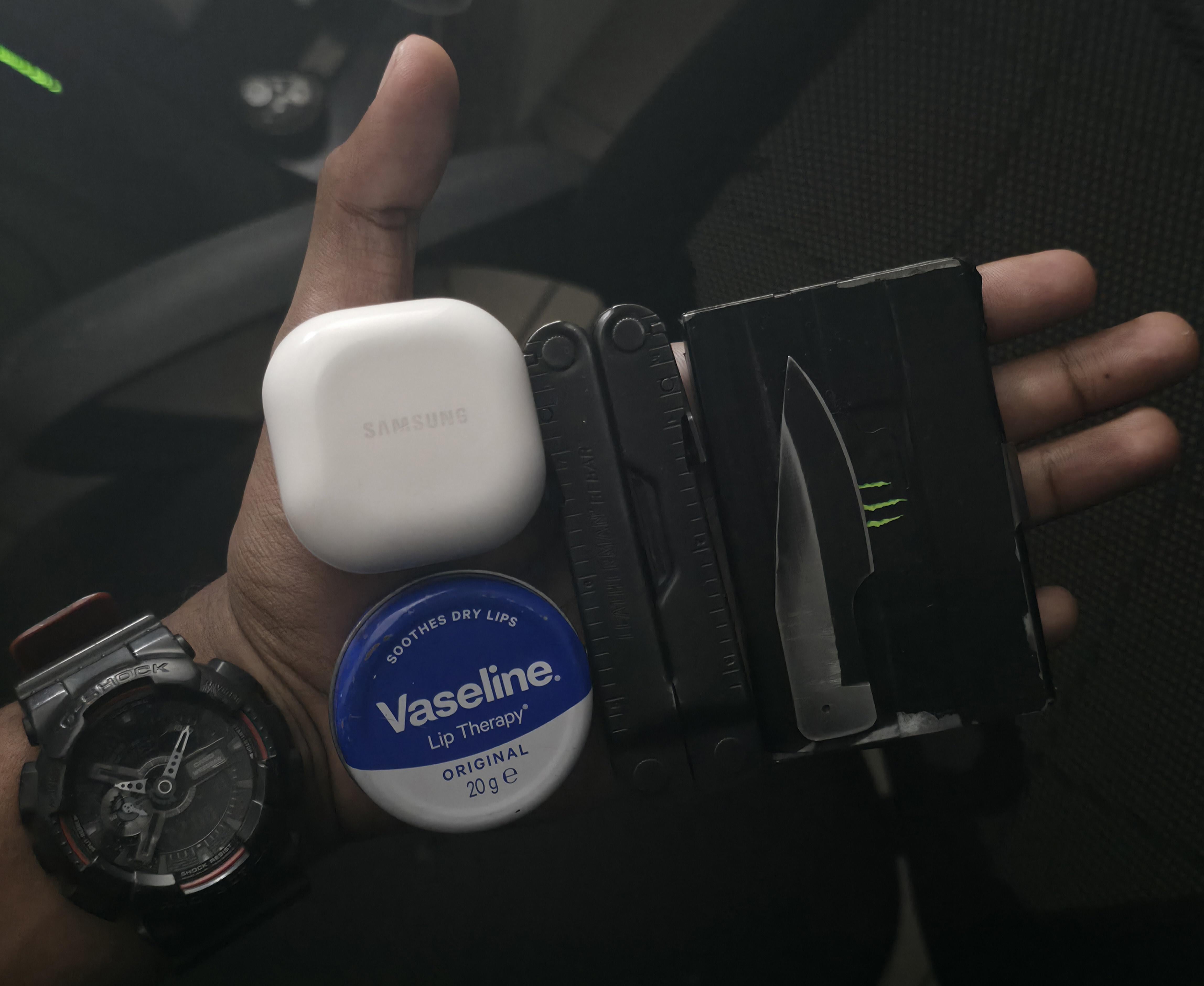 In EDC My go to April 30, 2026 Share Share on Facebook Share on Twitter Pinterest LinkedIn These are my go-to for basically anyday. Wallet The blade [ slots really well in my wallet] Buds fe Vaseline Gshock Leatherman rebar S25Ultra [used to take the picture] by itznokken EDC 1 Comment AutoModerator 2 hours ago Thank you for posting to r/EDC! Include a detailed item list (make/model) within **1 hour** of submission. Lists can go in the title, a comment, or the image. Posts without lists will be removed. If you have already provided a list, not further action is needed, thanks! [Rules](https://www.reddit.com/r/EDC/wiki/rules) | [FAQ](https://www.reddit.com/r/EDC/wiki/faq) *I am a bot, and this action was performed automatically. Please [contact the moderators of this subreddit](/message/compose/?to=/r/EDC) if you have any questions or concerns.* Write A CommentYou must be logged in to post a comment.