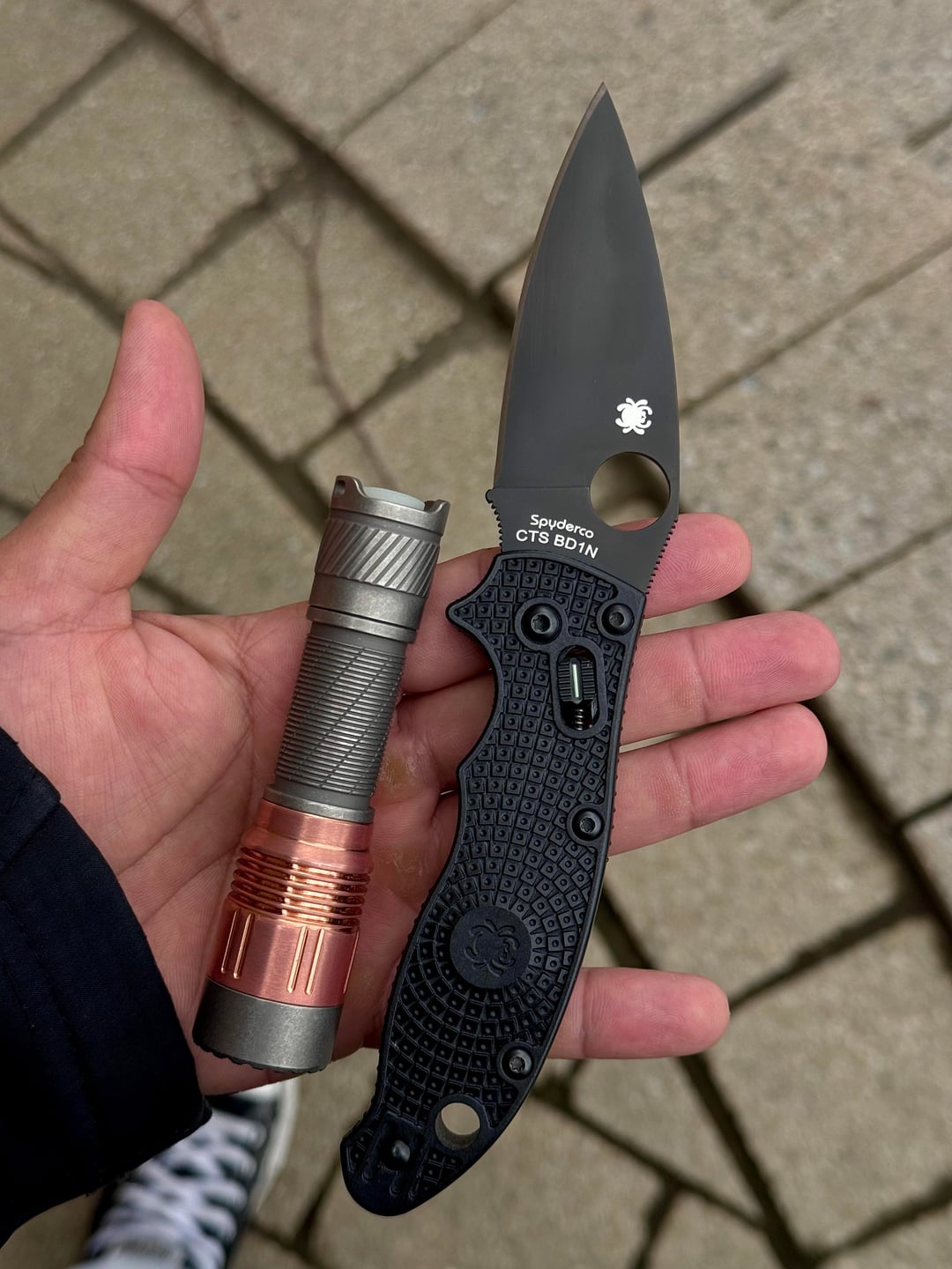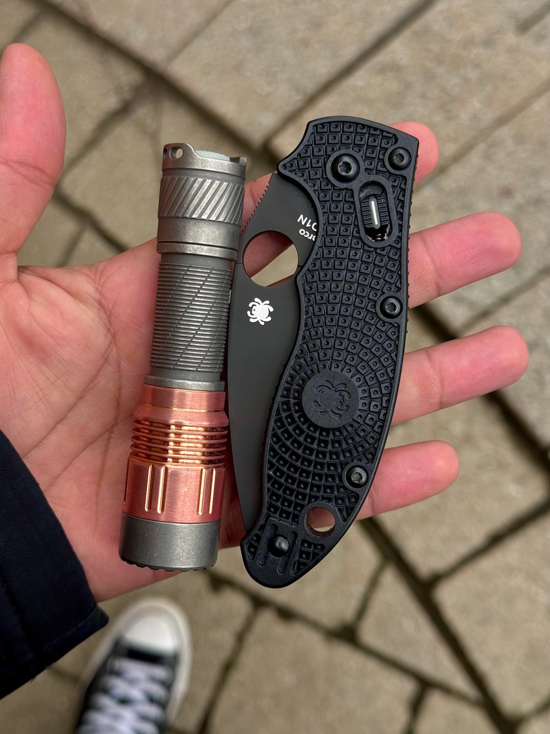In EDC Today’s carry April 30, 2026 Share Share on Facebook Share on Twitter Pinterest LinkedIn Decided to offset the Titanium copper heft with some light weight FRCP for today’s carry🙌🏽 Convoy T6 Titanium Copper with OP reflector, GITD gasket SFT25r 5000k. Spyderco MANIX 2 LW BD1N DLC. 2021 model with screw down scales. by erentrueform EDC 1 Comment AutoModerator 2 hours ago Thank you for posting to r/EDC! Include a detailed item list (make/model) within **1 hour** of submission. Lists can go in the title, a comment, or the image. Posts without lists will be removed. If you have already provided a list, not further action is needed, thanks! [Rules](https://www.reddit.com/r/EDC/wiki/rules) | [FAQ](https://www.reddit.com/r/EDC/wiki/faq) *I am a bot, and this action was performed automatically. Please [contact the moderators of this subreddit](/message/compose/?to=/r/EDC) if you have any questions or concerns.* Write A CommentYou must be logged in to post a comment.